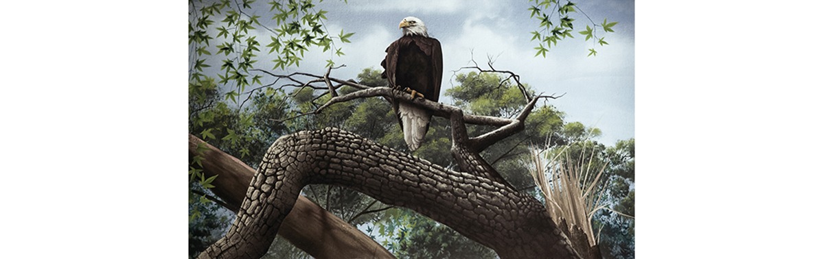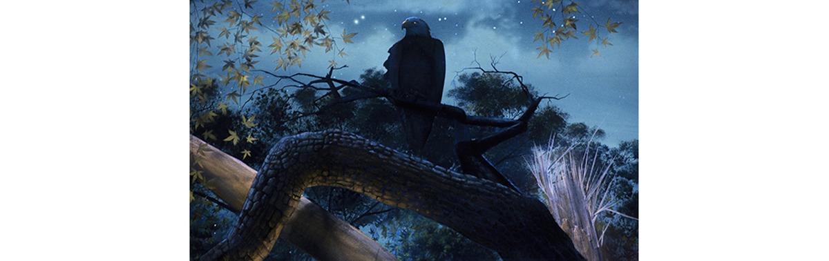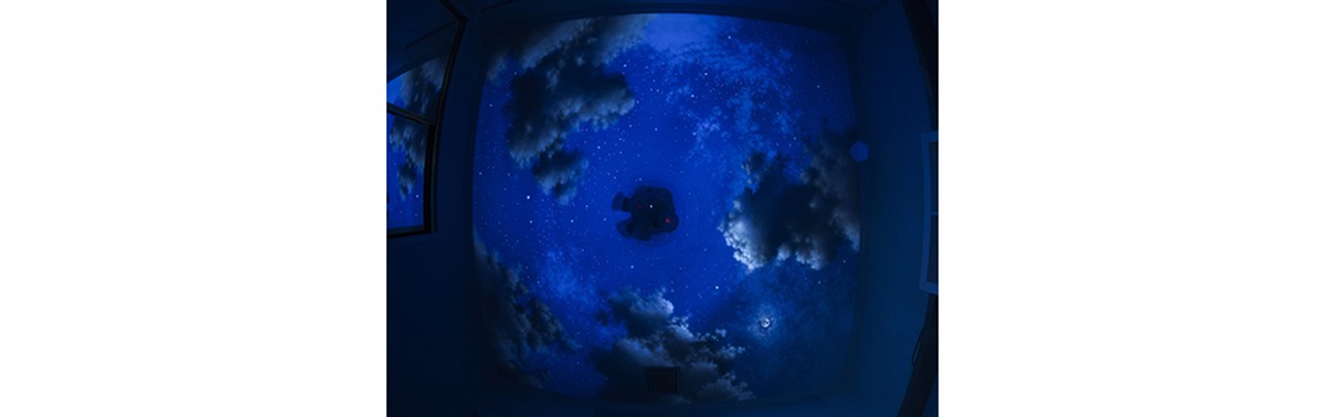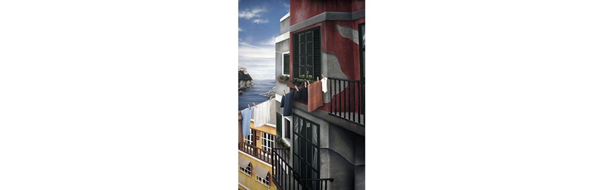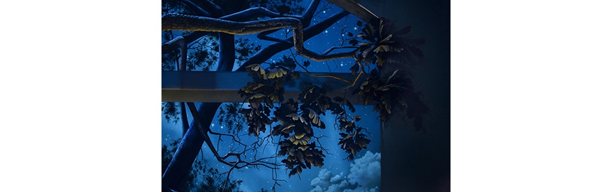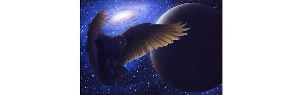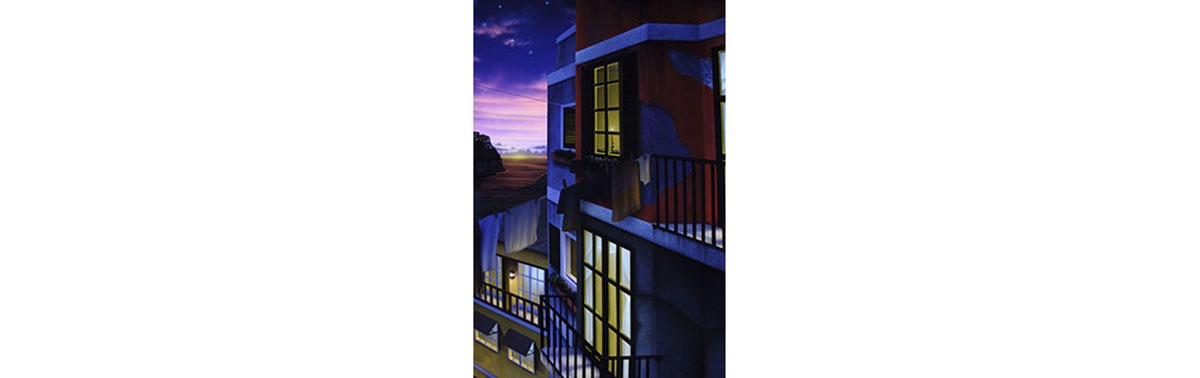 Images that appear one way under normal light, but differently under black light. A pastel art becomes a bustling cityscape!