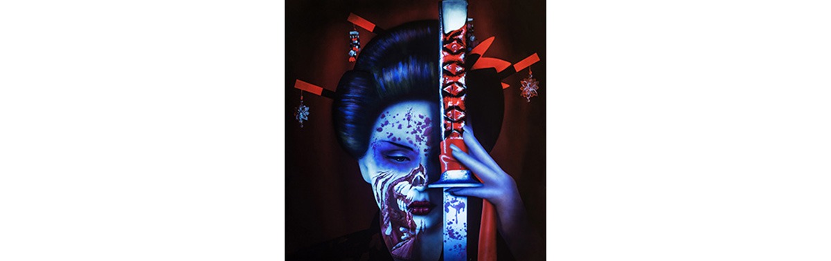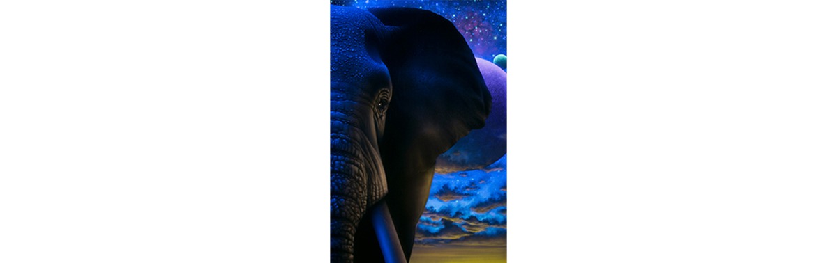 Brightly colored fluorescent images which also fluoresce (glow) under the black light. The Black light reveals the added depth and vibrance to a visible image.